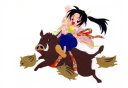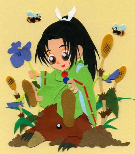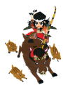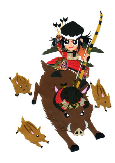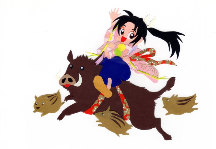 山深い鞍馬寺に入れられた牛若丸、 時には山の動物たちと戯れることも あったかもしれません。 金太郎さながらに、 熊に跨りお馬の稽古、 なんてこともあったかも? 彼なら猪だって乗りこなせそう。 |
