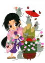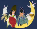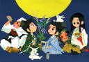 義経と与一が膝をつき合わせ、 にぎやかな仲間達も加わって、 いざ名月の宴!…という絵のなかに 「デビュー五周年おめでとう」 の祝意もひそかに表してみました。 (意味がわからない人は わからなくても大丈夫です・笑) 名月のように天高く美しく、 彼らがいっそう輝きますように…。 |