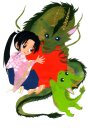 どっしりと包容力あふれる 弁慶のたたずまいは何となく トトロの姿とかぶり…ませんか? (キレると王蟲と化しますが) そんな正体不明のモノノケ(?)と 心通わす少女…いや少年牛若丸。 やっぱり宮崎アニメです。 |