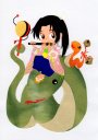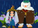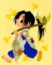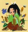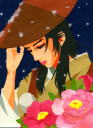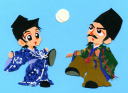 中秋の名月を愛でる義経&静。 (三日月だけど気にしない) 義経の傍らにもうひとり誰か (正妻か弁慶か)を座らせようかと 考えましたが、 「うる星やつら」のOP(初代)みたく なっちゃうので断念。 |