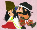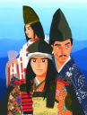 義経と義仲、史実では じかに顔を合わせることがなかった (と思われる)ふたりですが、 会えばきっと意気投合するはず! ついでに巴と静も気が合いそう。 4人で仲良くダブルデートさせて あげたいな〜と思って、 こんな絵をつくってみました。 |