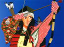 滝沢演舞城2007公演記念、 夏空のもと弓を引く義経。 嚆矢=鏑矢は開戦の合図であり、 物事の始まりの意でもあります。 また屋島合戦で那須与一が 扇の的を射る際に用いたのも鏑矢 ということで、何だか鏑矢には 縁起のいいイメージがあります。 滝沢義経様にこれからも 多くの幸あれ! |