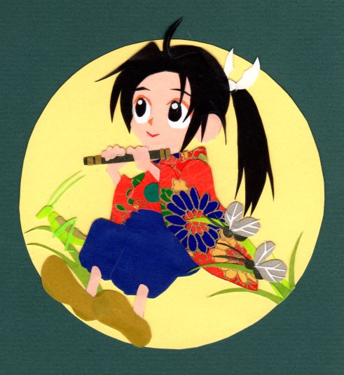 義経には戦装束が一番! でも大河「義経」を見てからは 平時の直垂姿にもメロメロです。 優美なブルー系の衣裳が うっとりするほど似合う滝沢義経様。 (私の切り絵でその魅力を 伝えられないのが残念です) |