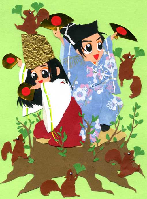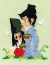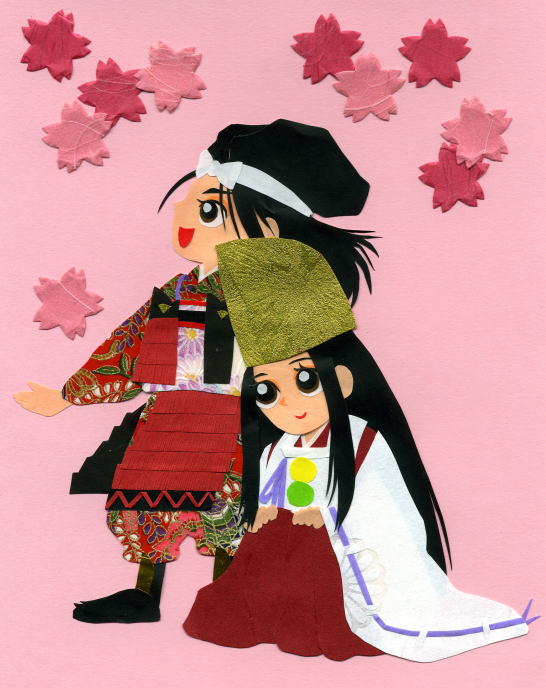 雪深い真冬の吉野山で 悲しく別れたこのふたりには、 千本桜の花の下でめぐりあい、 仲良くお花見してほしいものです。 |