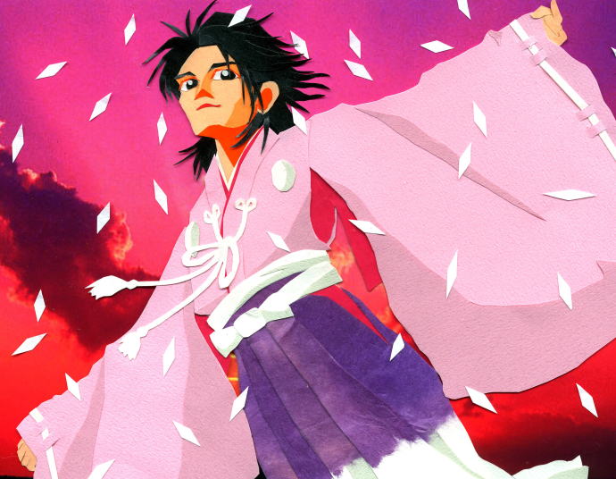滝沢演舞城2007クライマックス、 甦り天を舞う滝沢遮那王… 私の切り絵ごときでは 到底あの感動を再現できません、 お目汚しお許しください…。 「のちの世も又のちの世もめぐり合へ 染む紫の雲の上まで」 「義経記」義経の最期の歌を 思わせるあのシーンは、つくづく 至高のクライマックスでした。 |