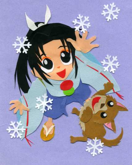 昨夏の切り絵「一蓮托生」で コッソリ登場させてた義経の愛犬・若丸。 義経(牛若)がもし本当に 犬を飼っていたなら、 そりゃあ可愛がったことでしょう! 義経本人にも何となく わんこのイメージがありますし。 元気な牛若は雪が降ればきっと わんこと一緒に喜んで 庭(山?)駆け回ってたに違いない。 |
