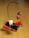 牛若丸・弁慶・舞妓 07年T.S様より頂きました (ありがとうございます!) ちいさな紙人形の牛若丸と弁慶が ふわふわクルクルと 追いかけっこのように動きまわる、 とてもキュートなモビール人形。 世にも可憐なこの対決を 見物(応援?)するように 一緒に回る舞妓さんもカワイイ! |