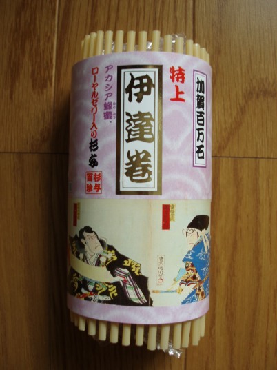 加賀百万石・特上伊達巻 07年末・地元スーパーで購入 お正月用の買出し時に発見! なぜか勧進帳のワンシーンが パッケージになった伊達巻。 こいつぁ春から縁起がいいや。 左端の義経が見切れてるのが ちょっと納得いきませんが。 |