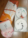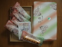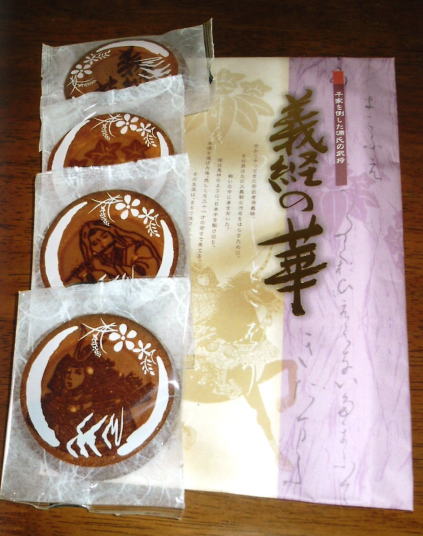 義経の華(¥530) 05年えさし藤原の郷で購入 笛を吹く牛若丸、鎧兜姿など、 さまざまな義経像が描かれた ほんのり甘い玉子煎餅です。 |