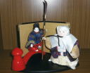 根付 義経/弁慶(各¥370) 05年岩手「平泉ゆめやかた」で購入 某ハム太郎のような まんまる目がキュートな、 義経(牛若)&弁慶です。 |