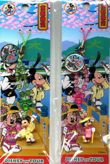 ディズニーオンツアー京都 携帯ストラップ 牛若ミッキー/静ミニー(各¥760) 発売元:潟fィーアイエス (07年京都嵐山お土産店で購入) つっついに…!あのネズ… ディズニーキャラまでもが 満を持して義経グッズ化。 ミッキーは牛若、ミニーは静。 グーフィーは弁慶…ですが、 なぜか単独グッズはナシ。 よく見ればストラップの紐部分に チャッカリくっついてます。 |