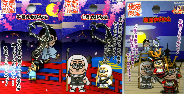 京都限定・加トちゃん 牛若/弁慶/義経(各¥370) (07年京都のお土産店で購入) この加トちゃんシリーズ、 実は随分前から売ってましたが あまりにもブサ… 購買意欲をそそらない外観のため なかなか手を出せずにいました。 どうでもいいけど 「牛若ットちゃんペッ!」は かなり苦しいと思う。 |