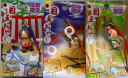 京都限定・ウルトラマン 牛若/弁慶/義経(各¥470) (07年京都のお土産店で購入) 弁慶バルタンがフォッフォッと笑う 悪夢のような五条大橋に 牛若ウルトラ、シュワッと登場! 一度見たら忘れられない、 相当ムチャなウルトラコスプレ。 ほかに天狗バルタンなんてのもいた。 |