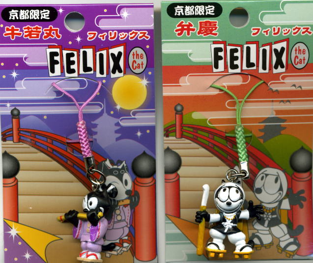 京都限定・フィリックス 牛若丸/弁慶(各¥420) (08年京都駅ビルで購入) アメリカ生まれの人気キャラクター・ 黒猫フィリックスも、和の装いで ご当地キャラワールドに参戦です。 ウインクしてるフィリックス牛若が カワイイ! フィリックス弁慶の頭巾から チョコッとはみ出た耳も愛しいです。 |