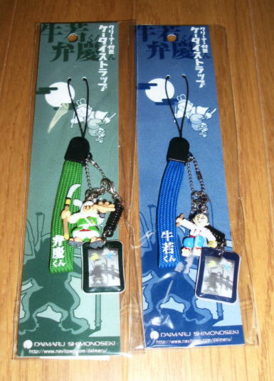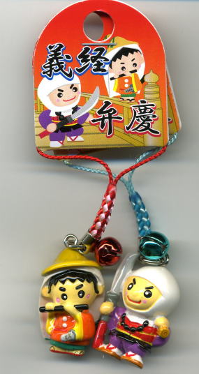 岩手限定マスコット根付 義経/弁慶(各¥360) 05年岩手中尊寺売店で購入 ホッペをプッとふくらました表情が 何ともなごむ義経弁慶マスコット。 パッケージ裏には人物の 略歴が載ってます。 |