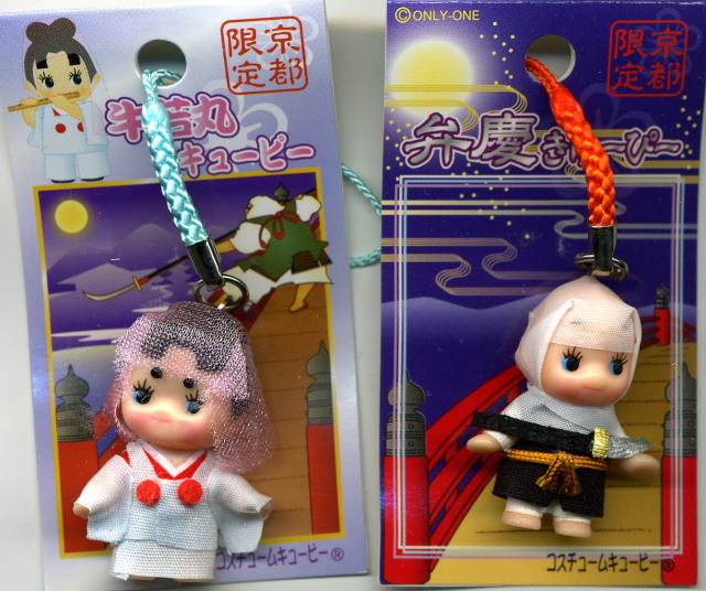 京都限定キューピー根付 牛若丸/弁慶(各¥420) 05年京都駅ビルで購入 布製の衣装が凝っててキレイ。 牛若キューピーはもちろんのこと、 弁慶キューピーが 意外にキュートで驚きです。 |