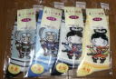 根付(¥450) 06年ネットショップで購入 (全国義経ゆかりの地で販売) 透けた被衣や笛など、 細かな部分までこだわりを感じる キュートな牛若キティちゃん。 ゆる〜いおふざけ感がウリの ご当地キティシリーズ中、 これは至極マジメに可愛いです。 |