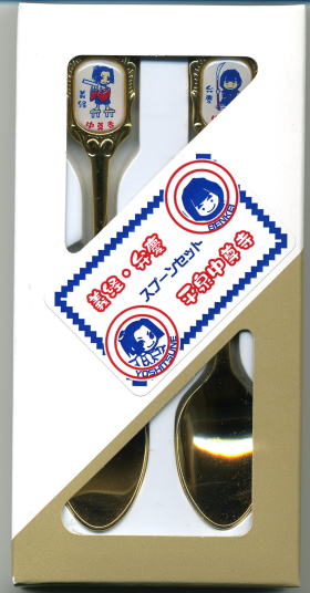 平泉中尊寺 義経・弁慶スプーンセット 04年N.O様より頂きました (ありがとうございます!) 中尊寺にて販売している 義経弁慶スプーンセット。 愛らしいキャラクターに感激! |