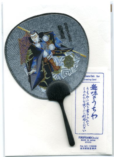 趣味のうちわ勧進帳 04年大阪松竹座で購入 切手を貼れば郵便で送れる ミニうちわ。 やっぱり勧進帳スタイルの弁慶は キマりますねえ。 |