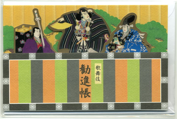 勧進帳レターセット 03年地元文具センターで購入 開くと人物たちが起きあがる、 ポップアップ式のレターセット。 |