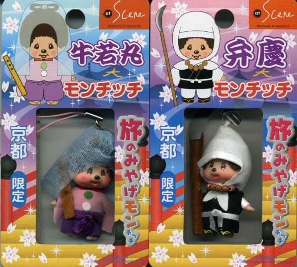 京都限定モンチッチ 牛若丸/弁慶 (09年京都駅ビルで購入) モンチッチ主従、京都に参上! モンチッチ、私の世代には ちょっとなつかしいレトロキャラですが 再ブームがきてるのかな? なんにしても牛若も弁慶も ふつうにカワイイので嬉しいです。 (義経のご当地キャラってカワイイ系より キワモノ系が多いから…) |