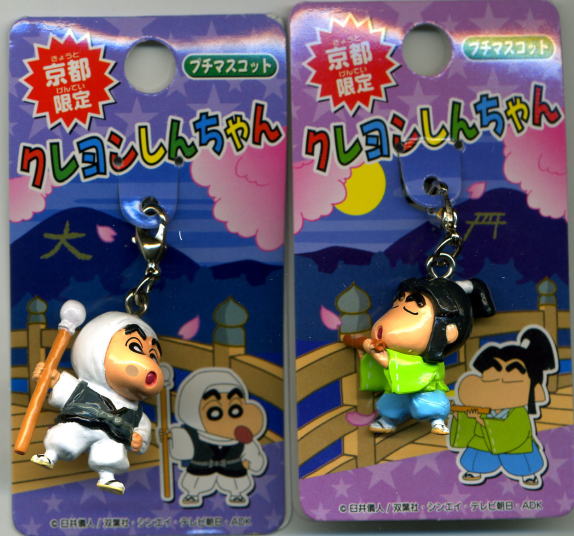 京都限定クレヨンしんちゃん 牛若/弁慶(各¥370) (08年京都のお土産店で購入) 人気アニメ・クレヨンしんちゃんも ご当地キャラ界に殴りこみ! でも、バルタン・ガチャピンといった とびっきりのキワモノにくらべれば、 牛若しんちゃんも弁慶しんちゃんも フツーにかわいく見えちゃいます。 |