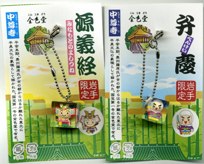 岩手限定マスコット キューブファスナー 義経/弁慶(各¥360) 05年岩手中尊寺売店で購入 透明キューブのなかに、 コロコロかわいい義経弁慶が! |