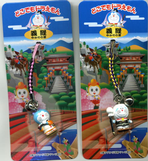 ドラえもん根付 義経/弁慶(各¥420) 05年岩手水沢江刺駅で購入 (全国義経ゆかりの地で販売) ついにドラえもんまで義経化。 ドラ牛若はややビミョーですが、 四次元ポケットから七つ道具を 出してきそうなドラ弁慶がイイ! |