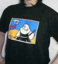 Tシャツ 牛若と弁慶(¥1995) 05年ネットショップで購入 牛若と弁慶の対決を、 かっこいいシルエットとロゴで、 シックにあしらったTシャツ。 写真の黒のほかに白・紺もあり。 下関大丸のオリジナルグッズです。 |