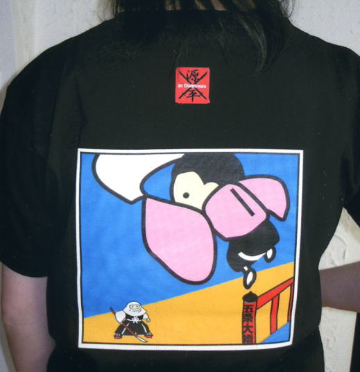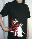 Tシャツ 五条橋の対決(裏) 左のTシャツの背デザイン。 牛若サイドからの俯瞰図で、 表デザインと対になってます。 |
