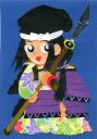吉野を駆けるニセ義経 享年26(1161〜1186) 秀郷流藤原氏・陸奥国信夫荘司佐藤元治の子 母:乙和(和泉十郎藤原清綱女/秀衝のいとこ) 通称:四郎兵衛尉 兄継信とともに主義経に忠実に仕えた。兄と違い下戸で温厚な人柄だったらしい。都落ちののち、吉野山にて義経を逃がすため身代わりとなって追手の吉野大衆と戦った。奮戦の末生き長らえて都に入り独自に活動していたところを糟屋有季(北条時政との説も)に見つかって包囲され、壮絶な自害をとげた。切腹した上、太刀を口に突っ込んでガバーと前のめりに倒れて後頭部まで貫いたという。怖…!でもその武士らしい死に様は頼朝をも感嘆させたという(壇ノ浦後には「イタチにも劣る者」とへんなけなし方をしていたのに)。切り絵の狐は、義経千本桜の忠信狐のつもり。 |