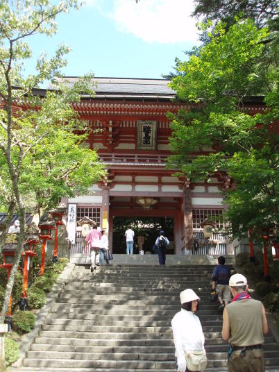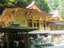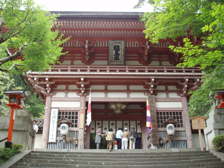 鞍馬寺仁王門と鞍馬ケーブル乗車チケット 夏の盛りの鞍馬寺、平日とはいえ観光客が多くてにぎやか。そして…暑かった!とても九十九折の参道を延々登る気になれず、ケーブルカー駅に直行。ちなみにケーブルカーのチケットの絵柄は定期的に替わるので、コレクションするのも楽しいかも。 |