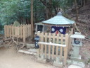 遮那王堂・背比べ石 貴船へ抜ける険しい山道の高みにあるのがおなじみ背比べ石。そのとなりには遮那王堂と名づけられた小さな祠があり、義経の魂が祀られています。 |