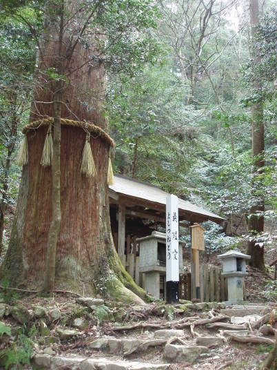 奥の院・魔王殿 僧正が谷からさらにくだった場所に、奥の院・魔王殿が鎮座まします。霊気の溜まり場のような独特の雰囲気ただよう神秘的なスポット。それもそのはず、地球を守るため650万年前に金星からやってきた魔王尊が祀られているんですから!これ以上の神秘があろうか。余談ですがタッキー&翼のヒット曲「Venus」でヴィーナス→金星→鞍馬山の魔王様、を連想したのは私ぐらいだろう。 |