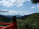 鞍馬寺本殿金堂 鮮やかな八月の緑に朱の本殿がよく映えます。本殿の高台からは比叡山の山並みが見渡せます(下の写真)。 鞍馬寺の狛犬はトラ。鞍馬寺の御本尊である毘沙門天が寅の月・寅の日・寅の刻に鞍馬山に現れたという故事に由来するのだとか。恥ずかしながら最近初めて知りました。阪神タイガースファンとしてはちょっぴり嬉しい。これで牛若が寅年生まれなら完璧ですが、意外や意外、彼は卯年生まれ。牛若っていうからてっきり丑年かと…。でもうさぎも可愛いからいいか。いっそ「うさ若」と呼んであげましょう。(やめろ) |