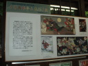 鞍馬駅駅舎の待合室には、江戸時代後期の浮世絵師・月岡芳年による源平関連の名画の数々が、義経の生涯を追うかたちでパネル展示されています。鞍馬寺での天狗との修行にはじまって、五条大橋での弁慶との出会い、源平の合戦、静との別れ等々、義経の生涯を彩る名場面がずらりと壁一面に並べられていて壮観!叡山電鉄は大河「義経」以降、牛若キーホルダーを販売したり案内板に牛若イラストを入れたりと、義経アピールに力を入れてくれているようで心強い限り。