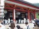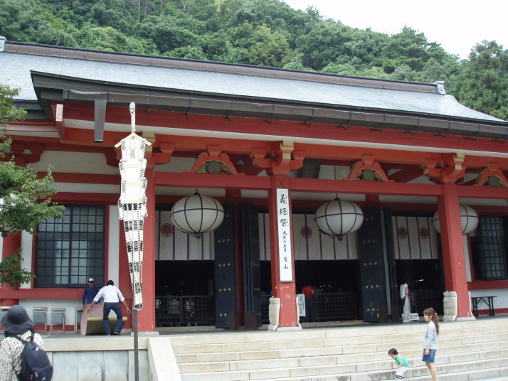 本殿周辺の境内はさすがに観光客が多くてにぎわってる…と思ったら、その大半は、義経祭に武道の奉納をするため集まった地元道場の子供達の保護者でした(苦笑)。本当の観光客達は、「??何がはじまるの?」と遠巻きに見てる。客寄せのための媚びた演出はほとんどなく、あくまでもお寺と地元の人々によるアットホームなお祭という感じが伝わってきます。