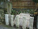 西行井戸 閑静で風光明媚な嵯峨野は貴族達のリゾート地であり、また世捨て人達の隠遁の地でもありました。名高い歌人・西行法師も一時この地に滞在したといわれており、その際に喉を潤したとされる井戸が「西行井戸」として、落柿舎のそばの路地に残されています。 |