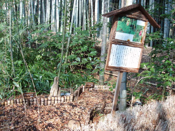 祇王寺・クマガイソウとアツモリソウ 境内の庭には、平家物語のワンシーンにちなみ、一ノ谷の悲話で有名な平敦盛と熊谷直実の名を冠した植物が植えられています。訪れた時期が冬だったのでその姿は見ることができませんでしたが…。 |