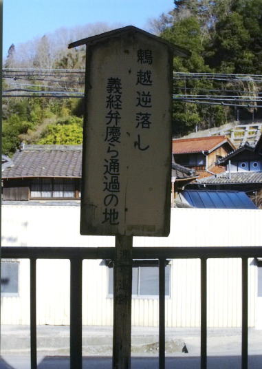 神戸電鉄・藍那(あいな)駅 箱木千年家からさらに南下、神戸電鉄の藍那駅へ向かいます(このルートもハイキングコースになっています)。藍那駅の構内にはささやかながら一ノ谷合戦の札が立てられています。 神戸電鉄(通称・神鉄)は北播磨・三田市と神戸を結ぶ私鉄。ここ藍那駅から終点の新開地(神戸)までは、ほぼ源氏勢三千騎の進んだ「鵯越」コースと重なります。 ちなみにここからの九郎義経の進軍ルートは二説あります。三千騎とともにまっすぐ大輪田泊(現在の兵庫・和田岬)に降りていった鵯越説、藍那から少数の精鋭(七十騎)を率いて須磨の一ノ谷本陣をじかに衝いた一ノ谷説。目下、どちらとも判別しがたいようです。 |