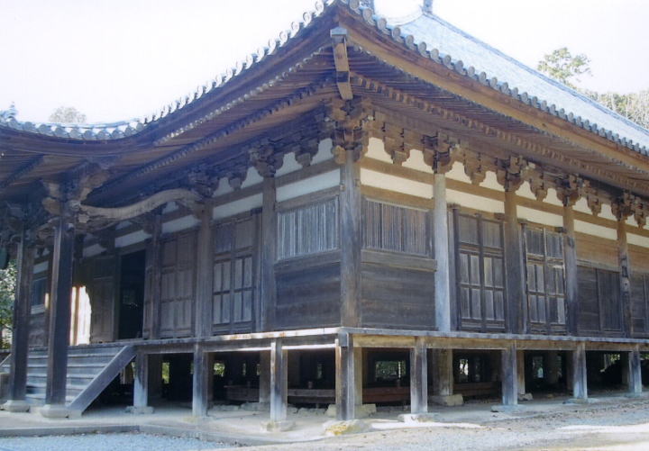 小野市・浄土寺(じょうどじ) 土肥実平に託された源氏勢七千余騎は加東郡東条町から小野市〜三木市を貫いてひたすら須磨へ向けて南下します。こちらのコースは平野が多く、大軍を率いての移動には適していたと思われます。その途のチェックポイントとなるのが小野市の浄土寺。建久三年(1192年)に建立された浄土堂は東大寺南門と同じ天竺式建築、本尊の阿弥陀三尊像は快慶作、ともに国宝に指定されています。 |