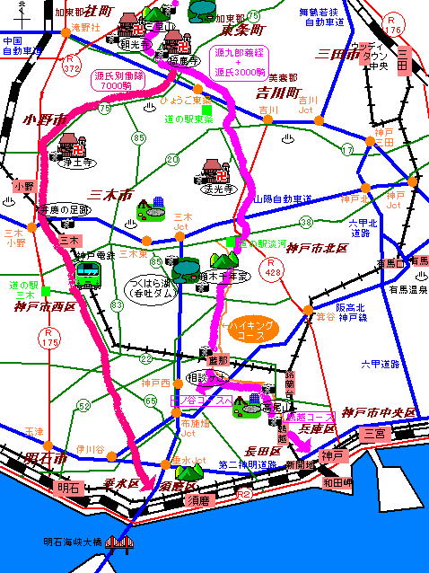 おまけ・もうひとつの源氏進軍ルート:小野市〜三木市の史跡 | |
