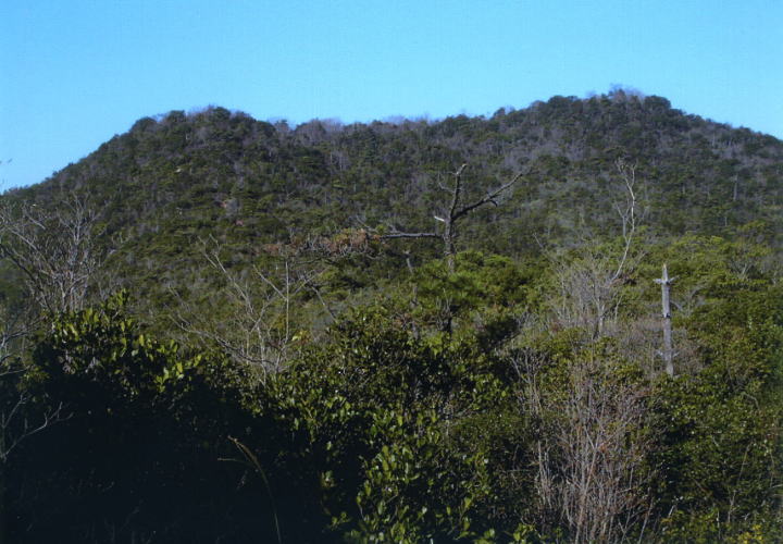 三草山(山頂遠景) 登山道の途中より臨む三草山山頂。 |