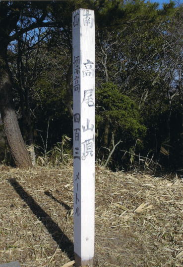 鵯越遊園墓地・高尾山 高尾地蔵尊(馬つなぎの松)の近くから細く急な坂がのびていて、これを登り切ると高尾山頂上です。写真のような標識のほかにはベンチが一台置かれただけ、広さも四畳半ほどしかないごくそっけない山頂ですが見晴らしは最高! 眼下には神戸の町並みが一望のもとに。東にははるか大阪湾、西は須磨から明石海峡大橋をはさんで淡路島、瀬戸内海までかなりクリアに見渡せます。猫の額のようなこの山頂から神戸の街を見下ろして「お山の大将」気分にひたるのもオツなものかも。 |