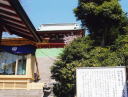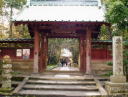 寿福寺(じゅふくじ) 寿福寺は、正治二年(1200年)に北条政子がかつて源義朝(頼朝らの父)の邸宅があったこの場所に、夫・頼朝の供養のため建立したもの。源氏山公園からじかに行けます。道があります。まともな遊歩道は途中で消えますが大丈夫、とにかく案内表示を信じて進むべし。熊笹生い茂るケモノ道(のようなところ)をガサゴソ歩き、いきなり出現する墓地にためらいながらも突っ切ればそこがもう寿福寺の墓地(本堂裏手)。この墓地には高浜虚子や大佛次郎といった著名人の墓、また北条政子と実朝の墓といわれるやぐら(岩倉)もあります。 寿福寺は、その山門から外門(写真)をつなぐ参道の石畳の美しさが有名です。 |