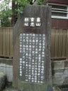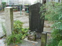 藤沢市・義経首塚と首洗井戸へ 時ならぬ頼朝台風の発生にびびりつつも逆に妙なハイテンションになってしまった我々は、翌朝一番に小田急江ノ島線に乗り、まず藤沢市内の義経の首塚・首洗井戸へ。藤沢本町駅から徒歩5分ほどのところです。ちょっとおっかない雰囲気の史跡なので、なるべく日の高い明るい時に行こうという手はずになっていたのですが、こんな雨の日では意味がなかった。(笑) 大河ドラマ「義経」放送時は写真(上)のようなのぼり旗がたくさん立っていてわかりすかったそうですが、その旗も今はただひとつ寂しげにはためいているのみ…。大通り(県道43号線)から少し路地を入った場所にあるので、道路沿いの標識(写真下)を見落とさぬよう参考にしてください。 |