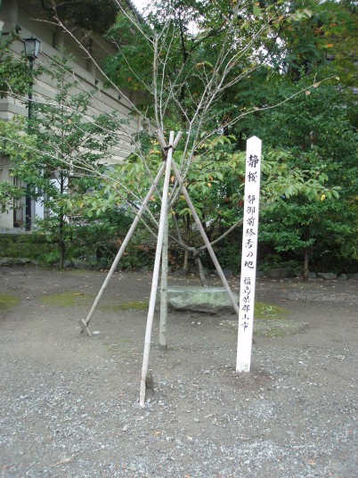 鶴岡八幡宮・静桜(福島県郡山・岩手県平泉) 鶴岡八幡宮の東鳥居から入ってまもない場所に、桜の若木が二本植えられています。静最期の地ともいわれる福島県郡山の「静桜」、そして義経終焉の地である岩手県平泉の「静桜」です。 この鎌倉では、義経のことは徹底的に無視するくせに(泣)静御前は大人気。毎年恒例の春の鎌倉まつりでも静の舞がメインイベントになっていますし、いろんなグッズも出てますし、静キティなんて扇にずばり「鎌倉」と書かれてる。さながら静は鎌倉のキャンペーンガール!?でも当の静にとっての鎌倉は、我が子は殺されるわ舞は強要されるわへんな男(景時息子)に言い寄られるわで、思い出したくもない忌まわしい地のはず。鎌倉の静御前というと、怒りと悲しみに震えながらひとりキリリと唇を噛みしめている、そんないじらしくも悲壮な姿ばかりが浮かびます。この静桜も、まだ若木で心もとない姿だからなおさら、ひとりぼっちの哀れさがきわだちます。このとなりに“義経桜”が仲睦まじく並んでたらさぞかし微笑ましい光景でしょうに…。静をプッシュしつつ、その最愛の人の存在を無視するものだから、鎌倉の「静愛」はどうにもチグハグで空回りな印象です。 |
