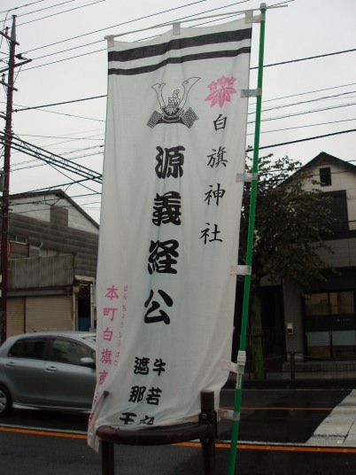 藤沢市・白旗神社ののぼり旗 首塚から国道467号線をすこし北に上った通り沿いに義経を祀った白旗神社があります。鶴岡八幡宮の白旗神社は頼朝と実朝のもの、頼朝の墓のふもとにある白旗神社はもちろん頼朝のもの。でもこの藤沢の白旗神社は正真正銘、義経のための神社だもんね〜!えっへん!(お前がいばるな)思っていたよりも大きく立派な神社だったので感激もひとしおです。義経ファンなら絶対、腰越の満福寺とセットで足を運ぶ価値のある神社ですよ! |
