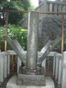 白旗神社・義経公鎮霊碑 本殿に登る石段の途中に、兜の形を模した義経公鎮霊碑があります。平成11年(1999年)、義経没後810年の年に、義経の首塚のあるこの藤沢市と胴塚のある宮城県栗駒町の有志の方々が、離れ離れの義経公の首と胴を合祀するべく「義経公八百十年祭」を催し、その記念に建てられた石碑だそうです。今でも義経の命日である6月13日には毎年、地元の人々が集い「源義経公鎮霊祭」が催されます。 |