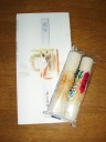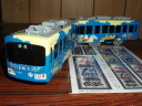 江ノ電で藤沢へ(江ノ電義経号プラレールと千社札) 鎌倉は日帰り観光客が多いため宿泊施設が少ないので、藤沢市のホテルに宿をとりました。江ノ電で一路、藤沢に向かいます。 江ノ電は腰越を経由して鎌倉と藤沢を結ぶ小ぶりのカワイイ電車で、大河ドラマ「義経」放送時にはラッピング電車が行き交い、義経ゆかりの腰越駅など駅全体がラッピングされ、オリジナル義経千社札の自販機が設置されたり各種グッズが販売されたりと、クールな鎌倉市内とは雲泥の差の盛り上がりだったそう。当時の華やいだ様子をご同行のおふたりから聞くにつけ、無理してでも期間中に行っとけばよかった〜!と悔やまれます。今となっては義経号プラレールでも走らせて気を紛らすしかありません。プァ〜ン!当時ネット販売していたオリジナル扇子やもち様にいただいた千社札(写真)は、今では入手できない貴重な宝物です。 |